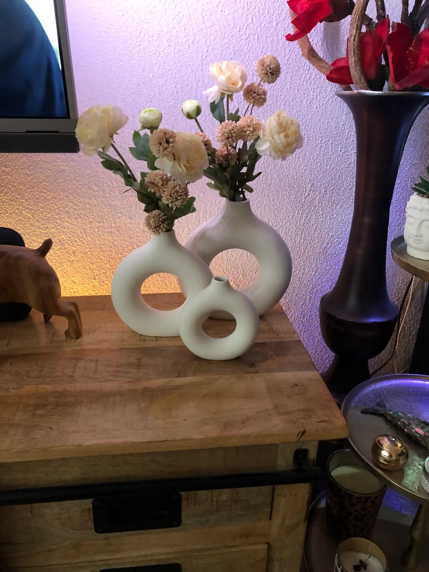 Nordic Hollow Ceramic Donut Vase – Modern Home & Office Decor